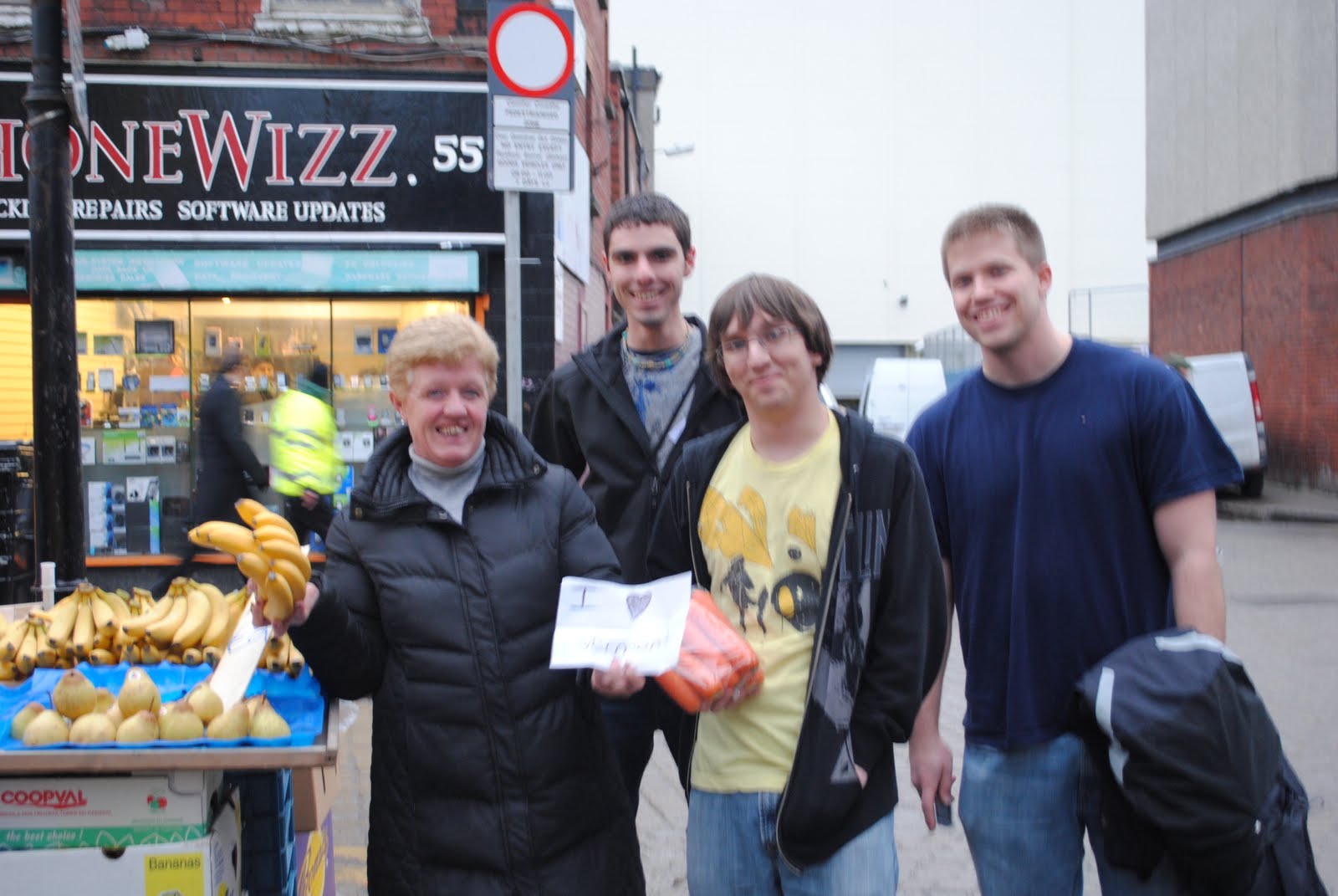 vendor holding carrots & and ‘I Love VT’ sign.